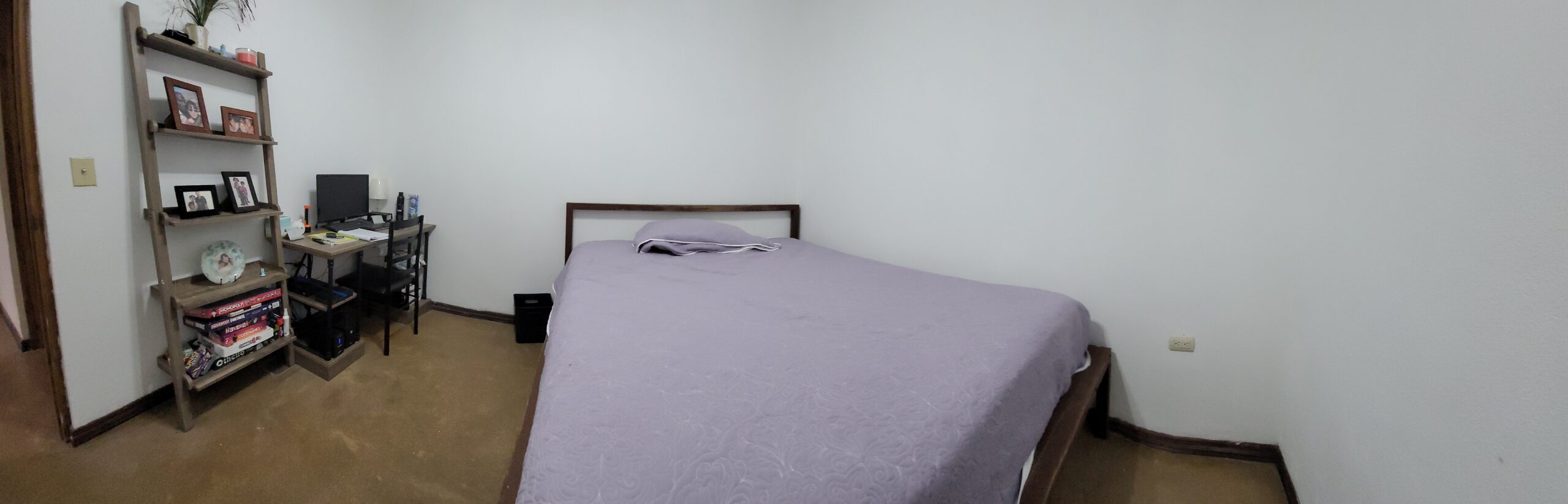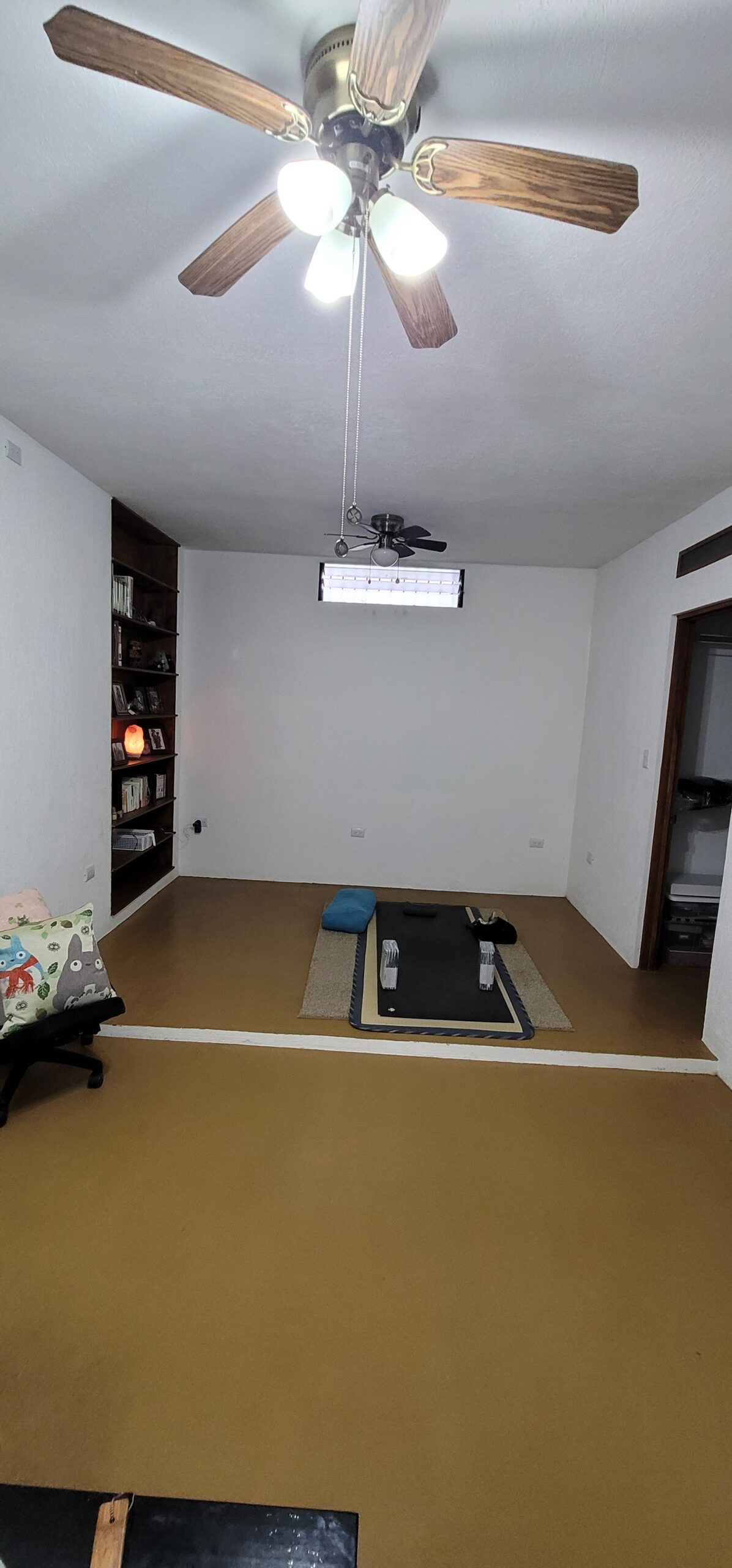 (Bedroom 1) 18’x 11′ room, 9′ ceilings with two ceiling fans and 7’x4′ walk-in closet with closet system installed. 8 shelf build-in bookshelf