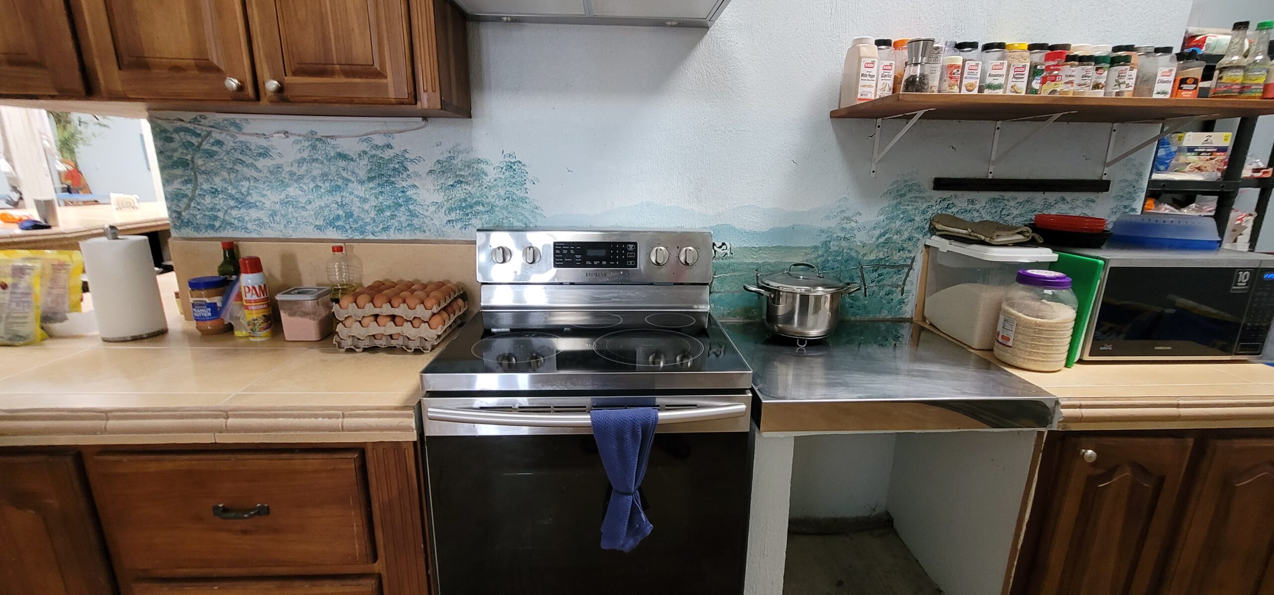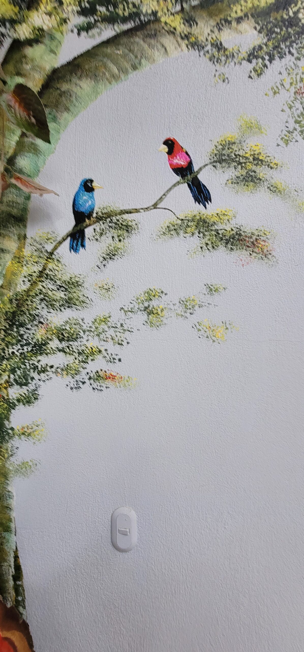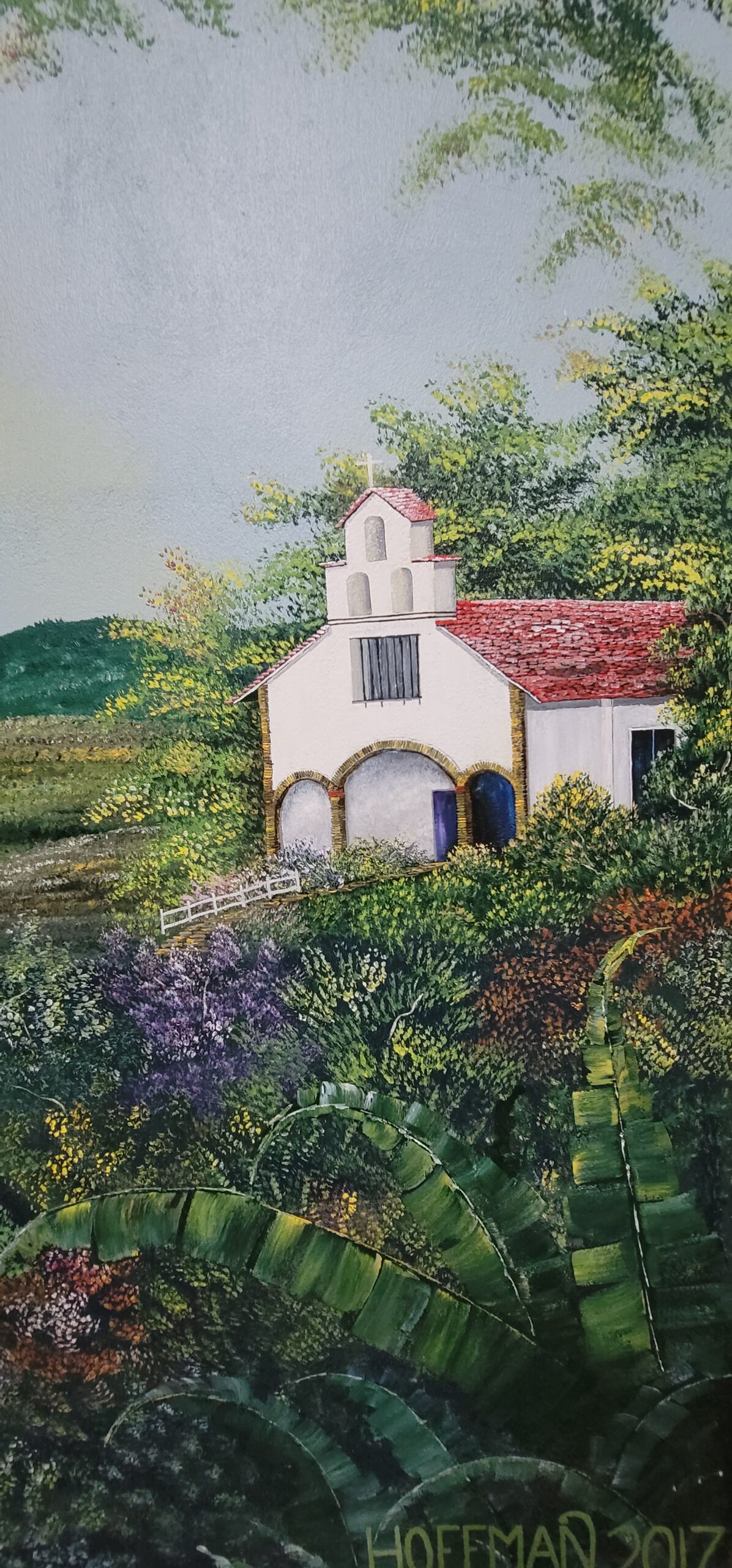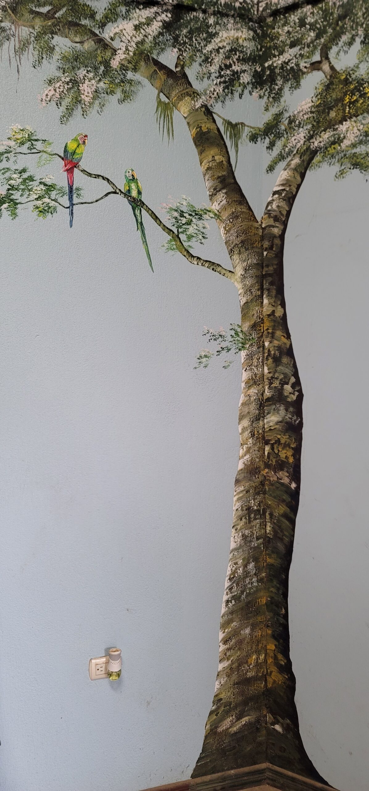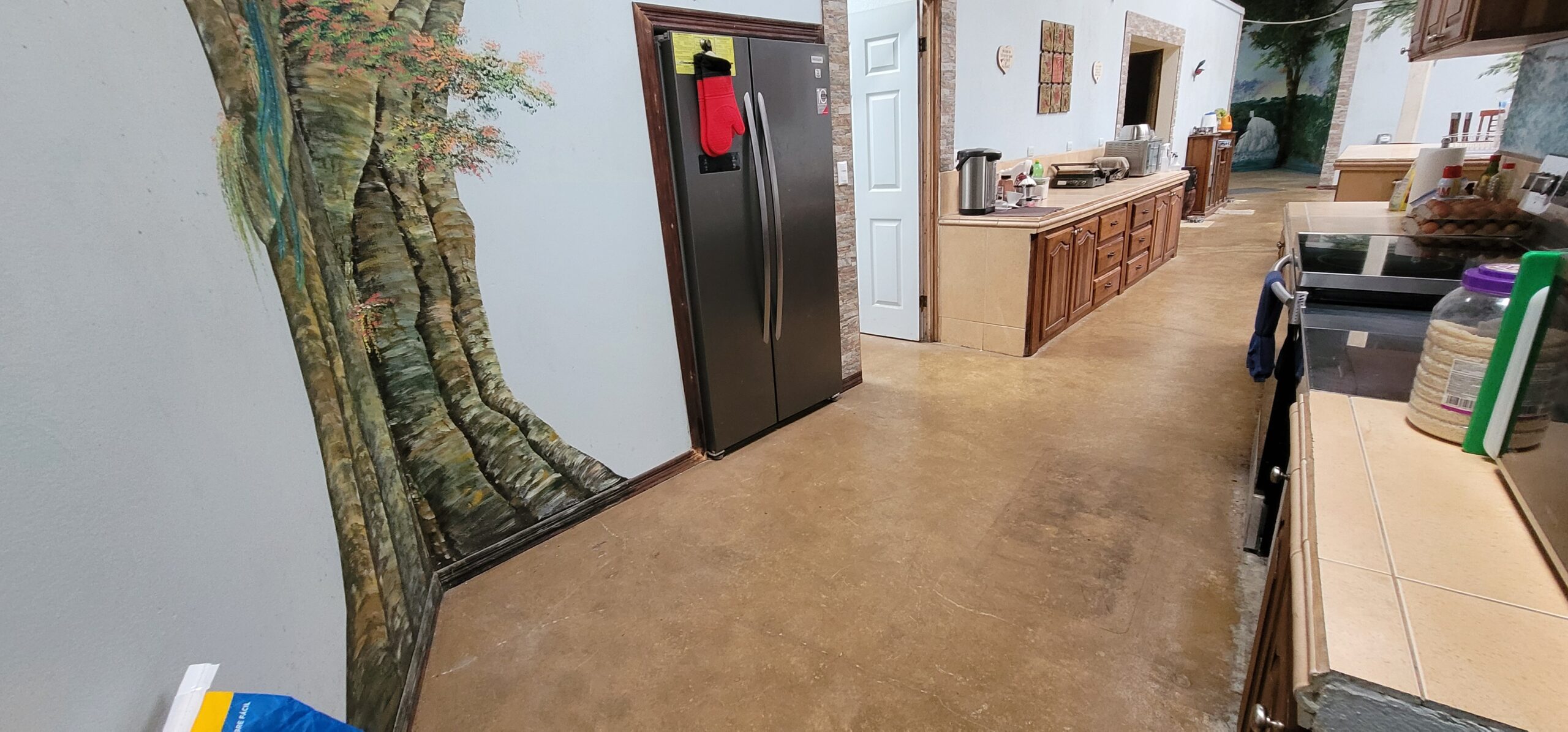 As you open the steel front door with a six point locking mechanism and walk into the large foyer, you are met with over 100 ft long by 12 ft tall landscape murals valued at over $12,000 of nature scenes located on this farm. The beautiful fine art landscape murals were done by international landscape artist Paul Hoffman. (He is available to do additional murals if desired). Murals are filled with scenes of waterfalls, rivers, trees with exotic birds, monkeys, orchids, sloths and a beautiful turn of the century chapel on a resort seen from this mountain. (See pictures below).