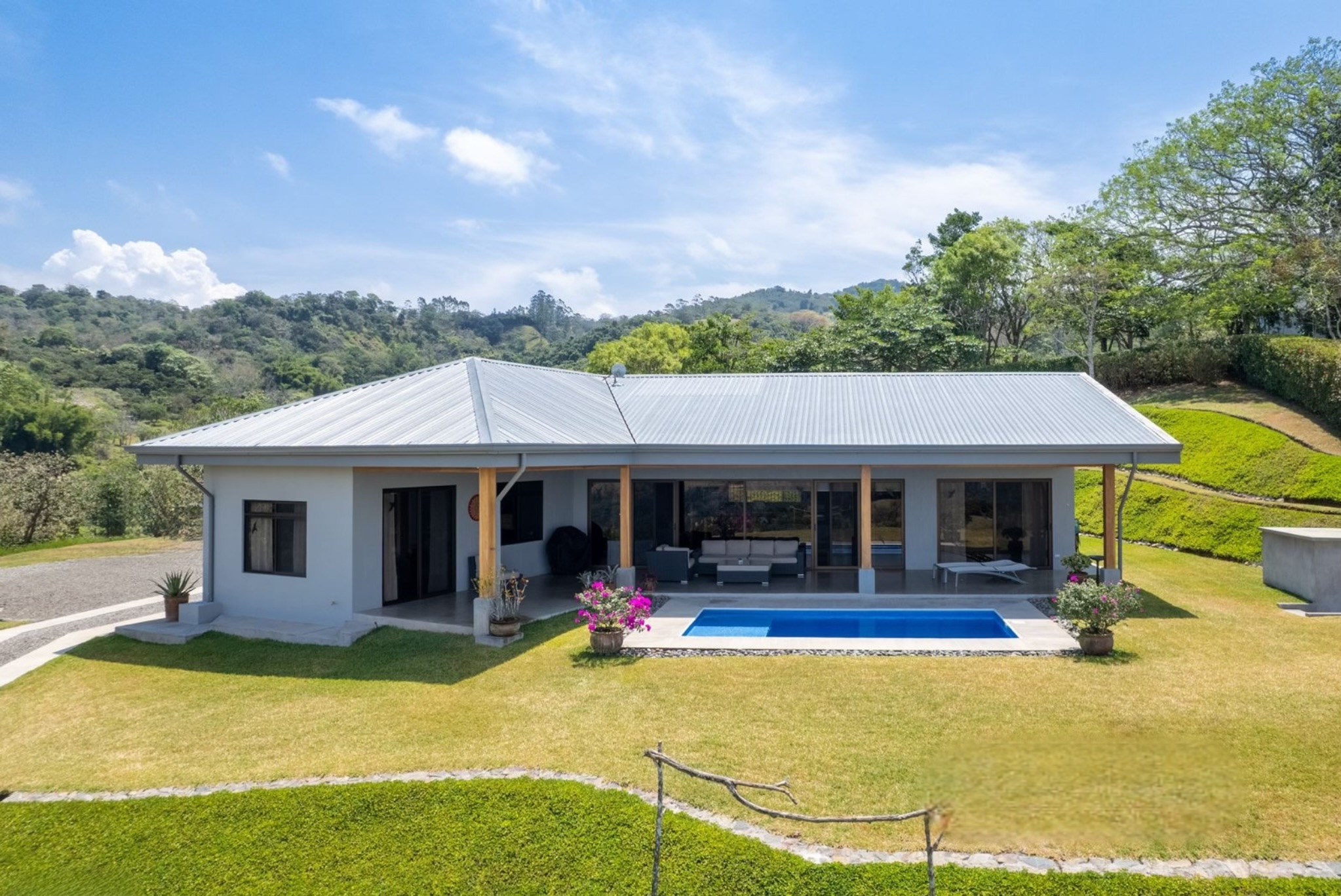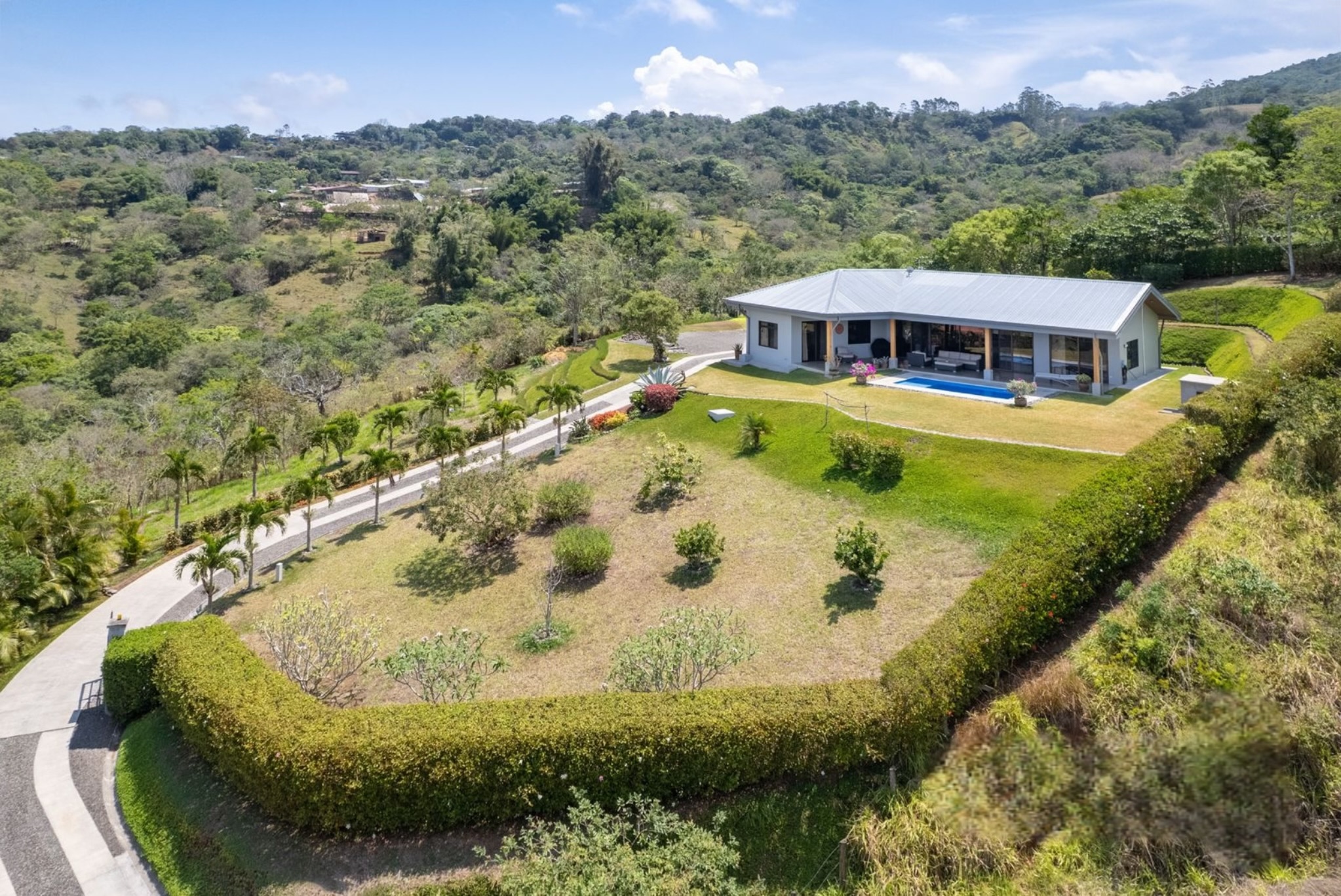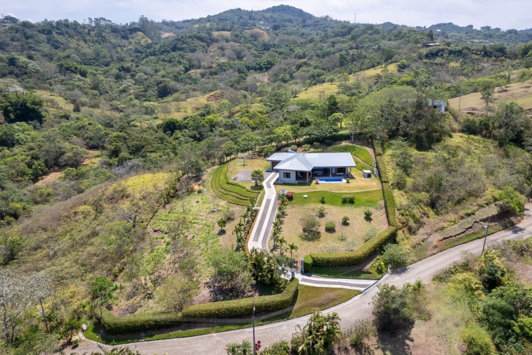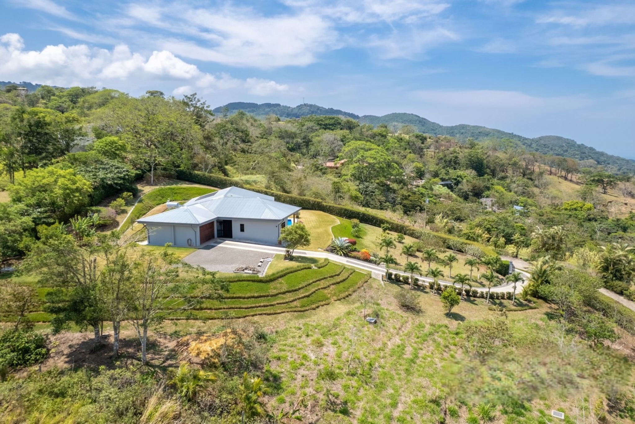 Tucked away in the serene Pacific Hills gated community of Magallanes, Agave Pacific House is a modern mountain retreat designed for those who crave privacy, stunning views, and effortless comfort. Set on a generous 1.24-acre lot at 960 meters above sea level, this single-level home offers sweeping 180-degree vistas over the Nicoya Gulf and surrounding hills a daily backdrop of breathtaking natural beauty.